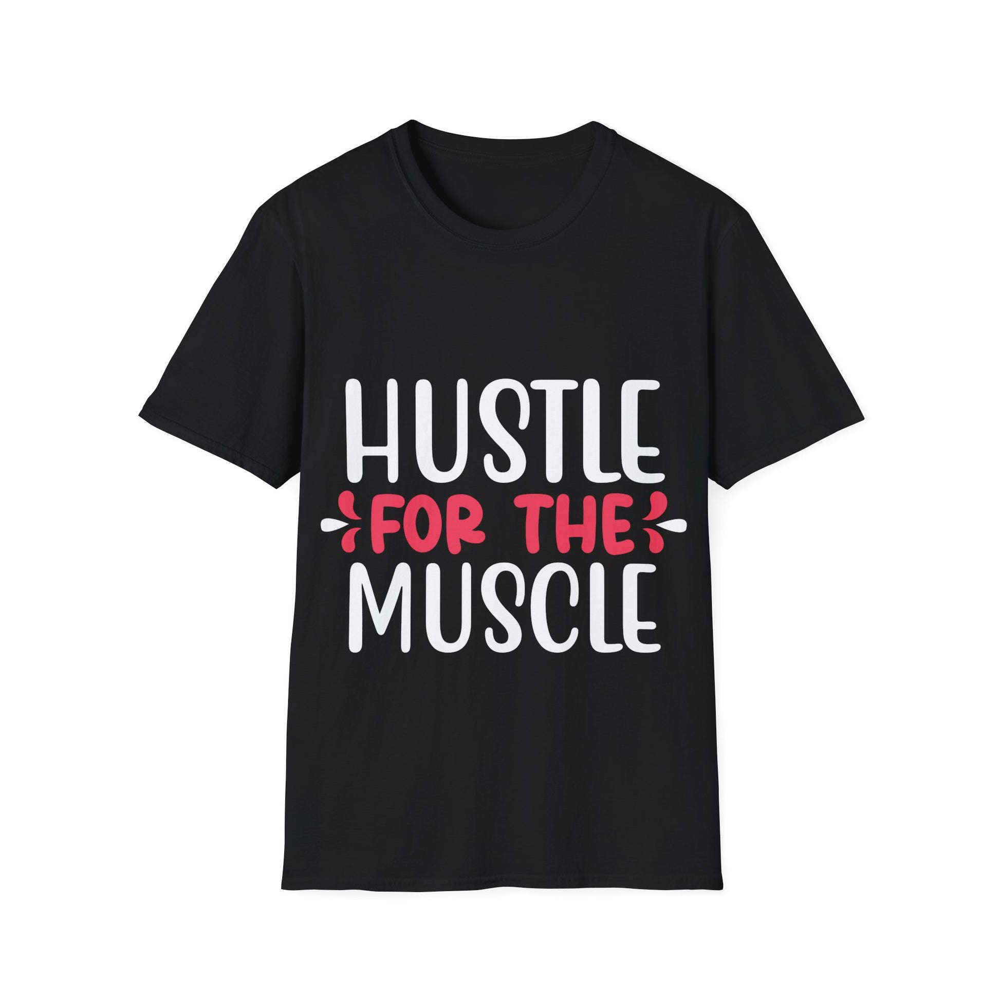 Black crew tee with bold, playful lettering that reads “HUSTLE FOR THE MUSCLE.” The clean white and pink graphic pops against the dark fabric, giving this shirt energetic, gym-ready vibes. Lightweight, smooth ring-spun cotton feels soft during warmups and cool-downs, while a classic fit and ribbed collar keep the silhouette familiar and easy to layer. Wear it to training sessions, casual gym meetups, or on days you want to show a little workout motivation. The tear-away label and tubular knit construction keep the fit comfortable and fuss-free so your focus stays on the set. Ethically sourced cotton and durable printing mean this tee holds up to frequent wear and washes.