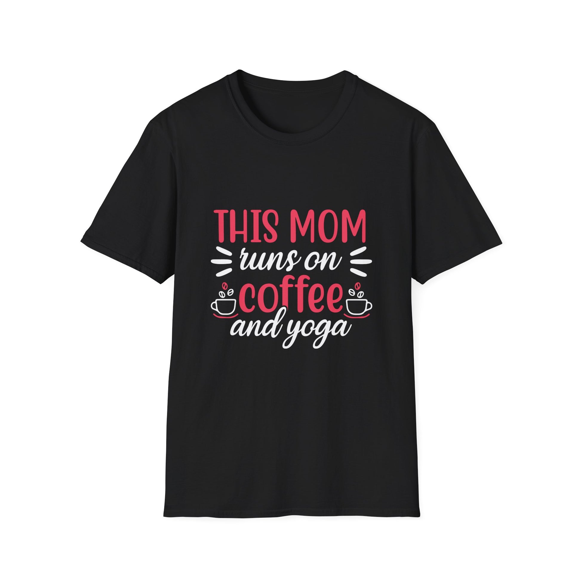 Mom T-Shirt - "This Mom Runs on Coffee and Yoga" Graphic Tee | Mother's Day, Yoga Mom Gift
