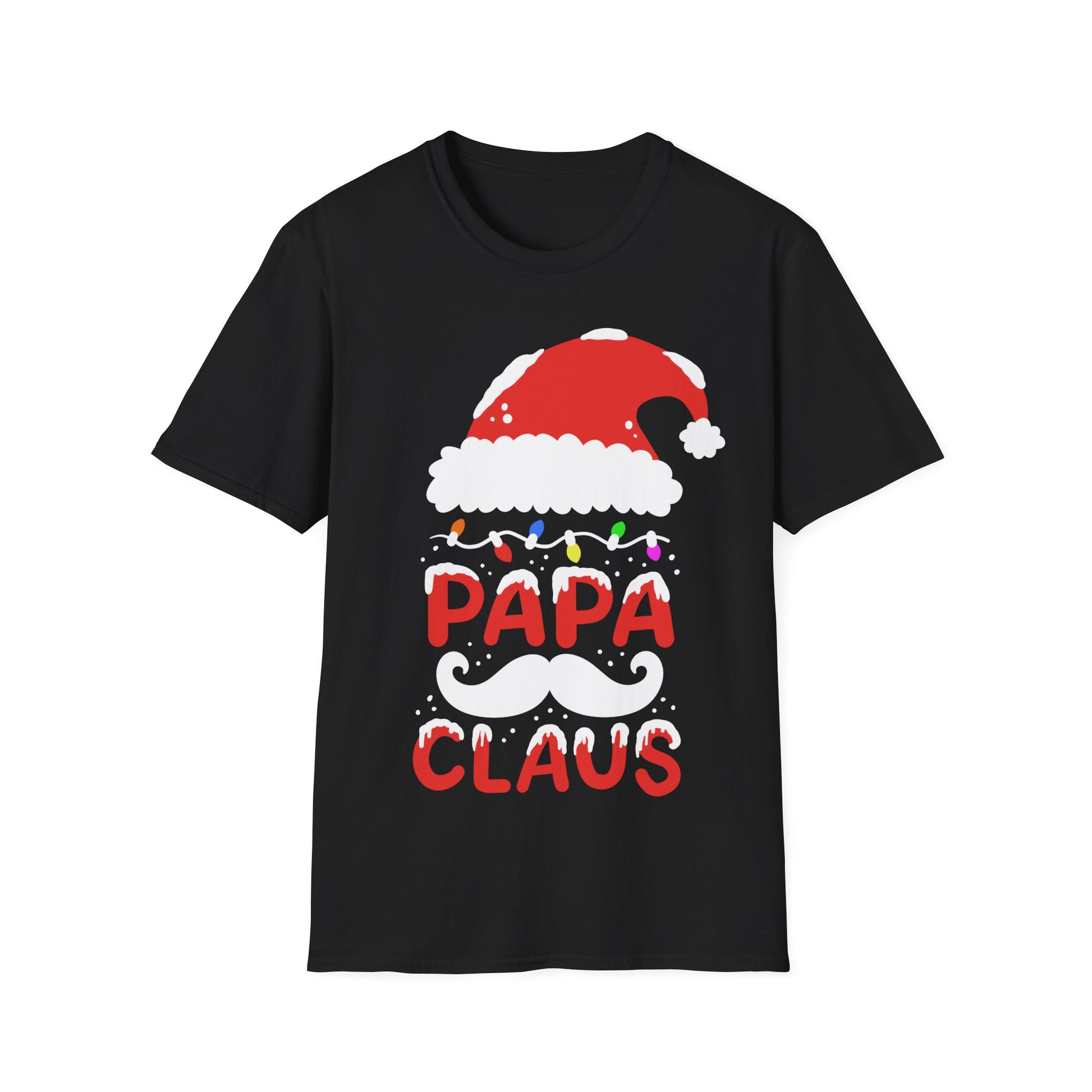 Papa Claus T-Shirt — Christmas Dad Holiday Tee with Santa Hat & Mustache