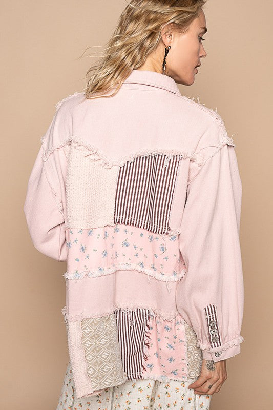 POL Raw Hem Patchwork Dropped Shoulder Jacket